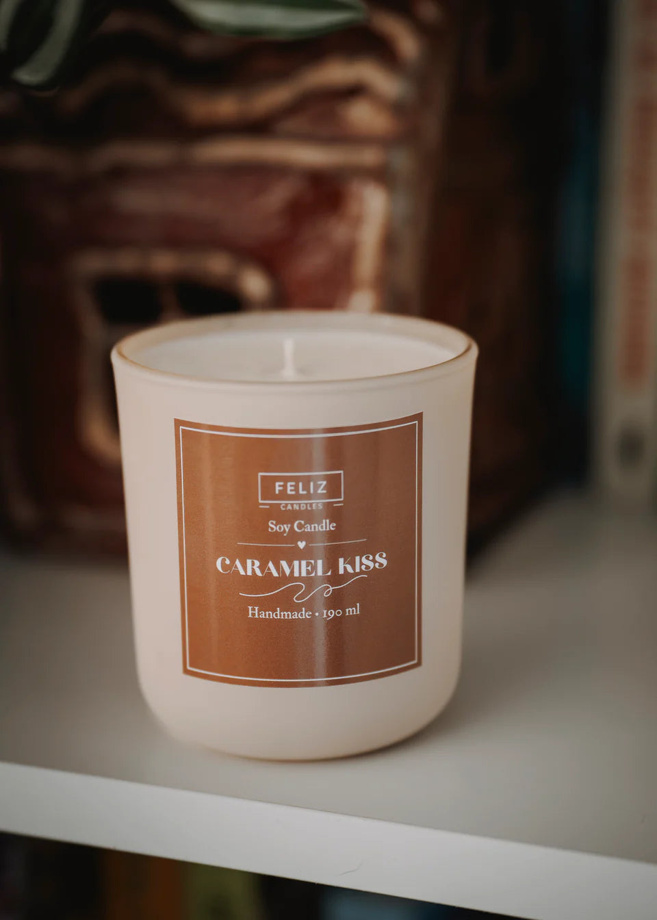 Immerse yourself in a sweet, cozy atmosphere with the Caramel Kiss soy candle. Its fragrance blends warm caramel with notes of vanilla and nuts, creating a scent that is as comforting as it is irresistible. Perfect for chilly evenings, Caramel Kiss adds warmth and delightful charm to any space.