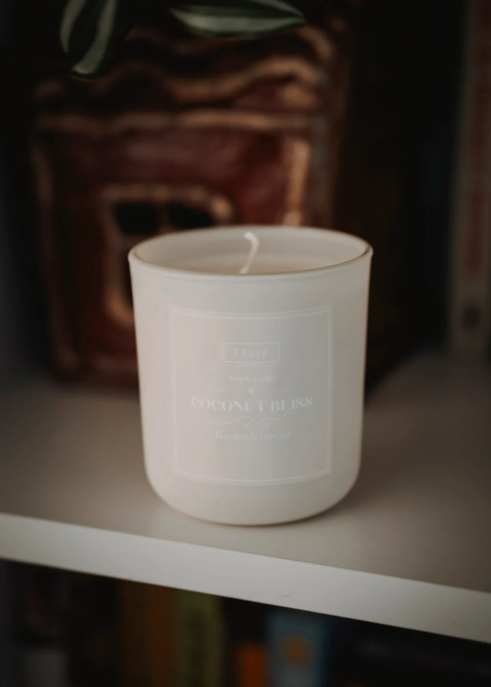 Immerse yourself in a tropical paradise with the Coconut Bliss soy candle. Its sweet coconut aroma blends with notes of vanilla and caramel, creating a warm, exotic atmosphere reminiscent of sun-soaked island holidays. Coconut Bliss is the perfect choice for summer days — or for anyone who wants to enjoy a vacation mood all year long.