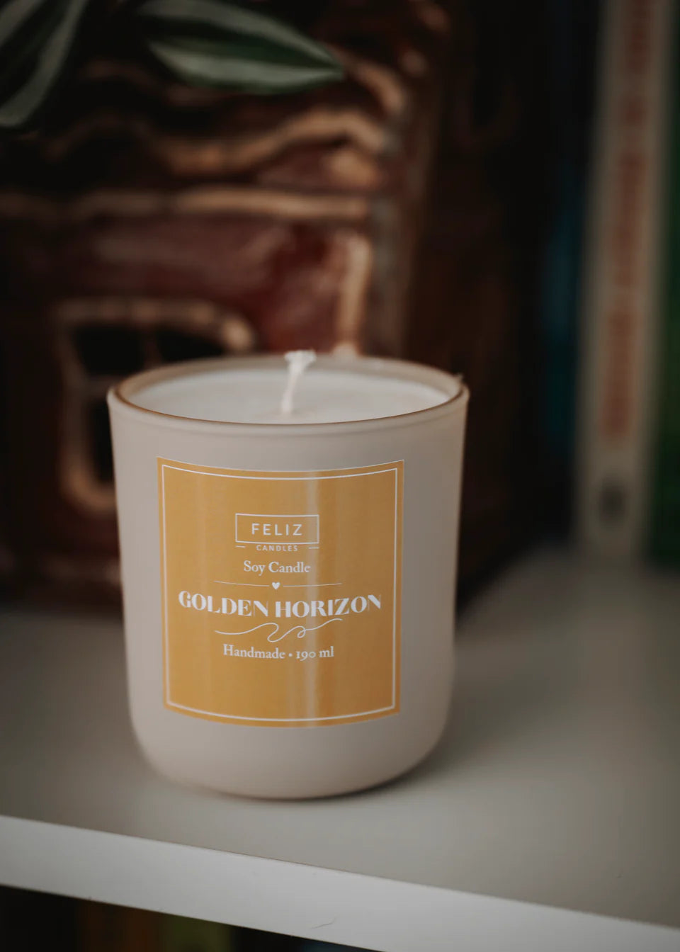 Feel the warmth of a setting sun with the Golden Horizon soy candle. Its blend of sweet honey, vanilla, and sandalwood creates an atmosphere filled with comfort, serenity, and golden glow. Golden Horizon is the perfect choice for those who want to surround themselves with a sense of cozy radiance and calm.
